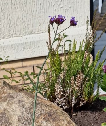 (Vervain) Will come back each year. Will self-seed. https://www.gardenersworld.com/plants/verbena-bonariensis/
