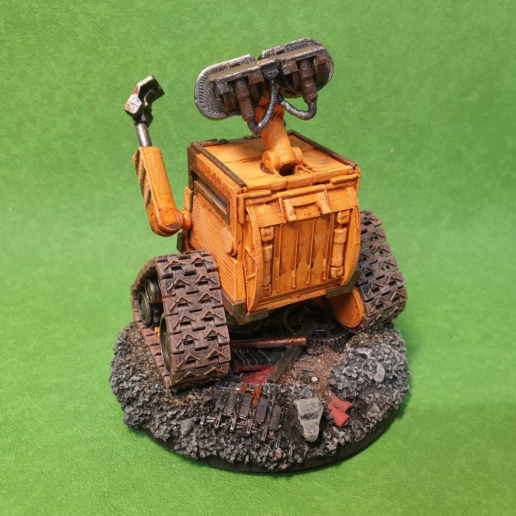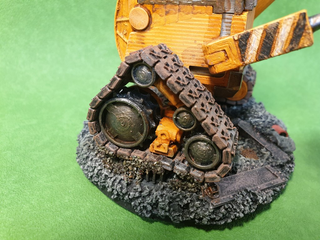 I acquired a 100 mm resin cast base from DAS Gaming, which I then modified by adding all manner of spare “bits” to represent the trash heap in which Wall-E is seen to be living at the start of the movie.