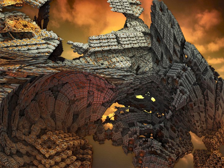 A science-fiction themed image created by manipulating a 3-D fractal.