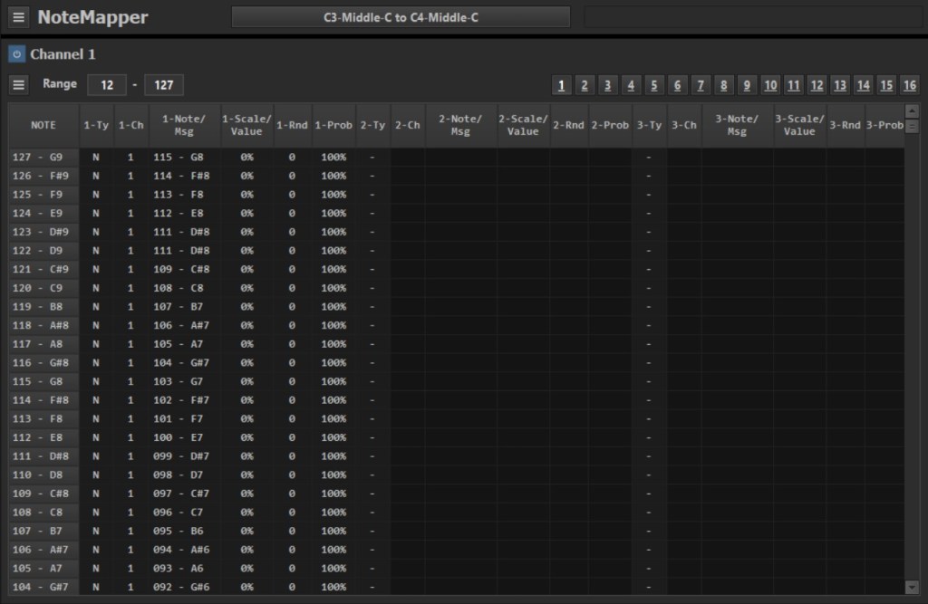 - Open the NoteMapper user interface and Load the preset called C3-Middle-C to C4-Middle-C.codefn42p